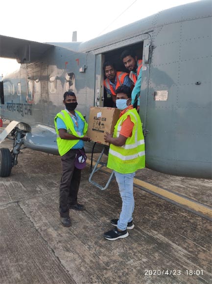 रायपुर – कोरोना वायरस के संक्रमण से लड़ने के लिए केंद्र सरकार के द्वारा भारतीय वायु सेना का डॉर्नियर विमान से लाइफ लाइन उड़ान योजनान्तर्गत राहत सामग्री पहुंचाई गयी . स्वामी विवेकानंद एयरपोर्ट के डायरेक्टर राकेश सहाय ने बताया कि राहत सामग्री लेकर पहुंचने वाली यह सातंवी विमान हैं . आज शाम लाइन उड़ान के अंतर्गत यह उड़ान राहत सामाग्री को लेकर आने वाला सातवां विमान है. केंद्र के द्वारा चलाई जा रही लाइफ लाइन उड़ान योजना के तहत मेडिकल किट पहुँचाया गया .जिसकी सहायता से डाक्टरों को कोरोना वायरस से लड़ने में सहायता मिलेगी . उन्होंने बताया कि इस विमान में कुल 140 किलो सामग्री है जिसमें टेस्टिंग किट इत्यादि दिल्ली से आईसीएमआर द्वारा भेजे गए हैं. सामग्री को प्राप्त करने के लिए आईसीएमआर एवं रायपुर के स्वास्थ्य विभाग की टीम एयरपोर्ट पर मौजूद रहे .