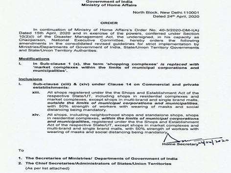 दरअसल गृह मंत्रालय की तरफ से जारी हुए आदेश के मुताबिक केंद्र सरकार ने आवासीय कॉलोनियों के समीप बनी दुकानों और स्टैंड-अलोन दुकानों को खोलने की इजाजत दे दी है जो नगरपालिका निगमों और नगर पालिकाओं की सीमा के भीतर आती हों. लेकिन इस इजाजत के साथ गृह मंत्रालय ने कुछ शर्तें भी लागू की हैं ।