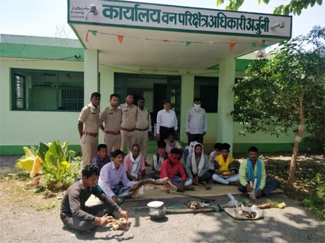 आरोपीगण प्रकाश वल्द ननकी कर्ष, राकेश वल्द गरीबदास चौहान, जगदीश वल्द बेदूलाल ठाकुर, नेपाल वल्द लुसऊ गोंड़, नेपाल वल्द आनंदसिंग पैंकरा, शत्रुहन वल्द गुरूदयाल पैंकरा, दीपक वल्द ईश्वर प्रसाद कर्ष, सुनील वल्द सुखसिंग कर्ष, राहूल वल्द कल्हैयालाल चौहान, सेवक वल्द धनीराम कर्ष, धनन्नजय वल्द लच्छन लाल चौहान, बिसाहू वल्द गर्जन गोंड़ के द्वारा अपराध स्वीकार किया गया है। इस प्रकरण में 01 नग हिरण का बड़ा चमड़ एवं 10 नग छोटे चमड़े के टूकड़े, 02 नग पैर का टूकड़ा, 250 ग्राम मांस का कटा हुआ टूकड़ा, 12 नग हड्डियों का टूकड़ा, 02 नग कुल्हाड़ी, 01 नग परसूल, 01 नग स्टील चम्मच, 01 नग ढक्कन, 01 कि.ग्रा. यूरिया, 02 नग लकड़ी का डंडा, 02 पानी का प्लास्टिक बाटल तथा साड़ी कपड़ा का रस्सी जप्त किया गया हैं।