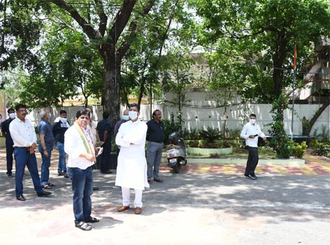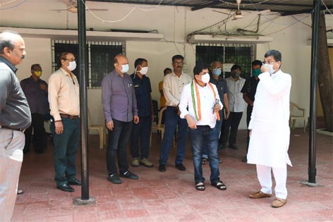 रायपुर, 9 मई 2020:- छत्तीसगढ़ विधानसभा अध्यक्ष डाॅ. चरणदास महंत ने आज नगरीय प्रशासन और श्रम मंत्री डाॅ. शिवकुमार डहरिया के रायपुर स्थित शासकीय निवास शंकरनगर पहुंचकर कुशलक्षेम जाना और डाॅ. महंत ने बंगले का अवलोकन भी किया। उल्लेखनीय है कि शुक्रवार को शाम 5 बजे गरज और चमक के साथ तेज आवाज में निवास परिसर के पास लगे पेड़ में आकाशीय बिजली गिरने से ब्लैकआउट हो गया था।