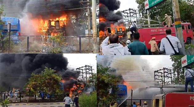 इंदौर। एग्रीकल्चर कॉलेज के नजदीक स्थित एआईसीटीएसएल के डिपो में खड़ी वॉल्वो बस में लगी आग। फायरब्रिगेड की गाड़ियों ने पहुंच कर आग बुझाने की चेष्टा की , किन्तु तब तक लगभग। पूरी बस जल चुकी थी, पास के विद्युत ट्रांसफार्मर,लाईन और दूसरी बसों को नुकसान होने की आशंका जताई जा रही थी।