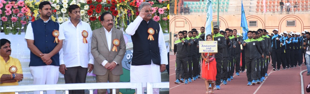 मुख्यमंत्री श्री बघेल ने मुख्य अतिथि की आसंदी से समारोह को सम्बोधित करते हुए कहा कि छत्तीसगढ़ वन सम्पदा के मामले में देश में दूसरे नंबर पर आता है. यहां के 45 प्रतिशत भूभाग पर वन है. श्री बघेल ने कहा कि ग्लोबल वार्मिंग की विश्व व्यापी चिन्ता के बीच छत्तीसगढ़ सरकार प्रदेश की जनता के सहयोग से पर्यावरण को बचाए रखने के लिए सतत् प्रयास कर रही है. केन्द्रीय वन, पर्यावरण एवं जलवायु परिवर्तन मंत्री डॉ. हर्षवर्धन ने शुभारंभ समारोह की अध्यक्षता की.समारोह में छत्तीसगढ़ के खेल एवं युवा कल्याण मंत्री उमेश पटेल, पश्चिम रायपुर के विधायक विकास उपाध्याय, रायपुर नगर निगम के महापौर प्रमोद दुबे,राज्य शासन के मुख्य सचिव सुनील कुजूर, केन्द्रीय वन, पर्यावरण एव जलवायु परिवर्तन विभाग के विशेष सचिव तथा वन महानिदेशक सिद्धांत दास सहित वन विभाग और अन्य विभागों के वरिष्ठ अधिकारी उपस्थित थे. समारोह में खिलाड़ियों ने आकर्षक मार्चपास्ट किया. मुख्यमंत्री श्री बघेल ने मार्चपास्ट परेड की सलामी ली.