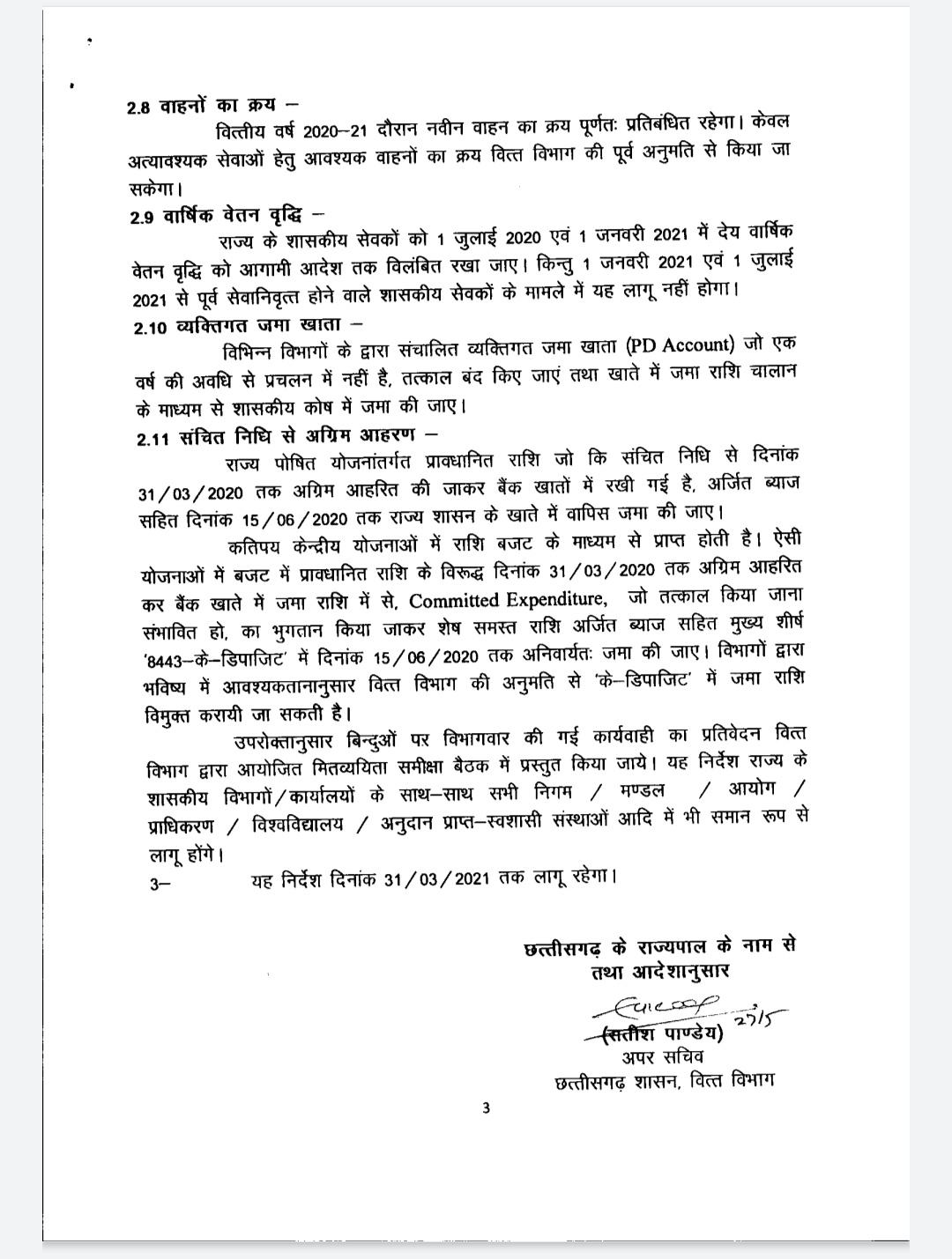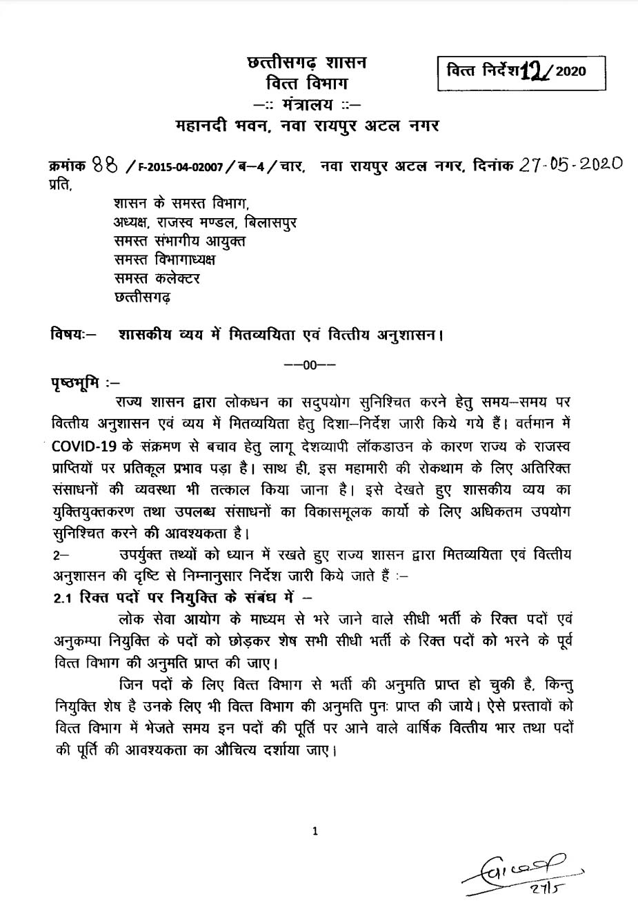 रायपुर। छत्तीसगढ़ में सरकारी कर्मचारियों की वार्षिक वेतन वृद्धि रुकी। आदेशानुसार कर्मचारियों व अधिकारियों के इंक्रीमेंट पर एक साल के लिए रोक लगा दी है। राज्य सरकार ने आदेश दिया है कि सभी शासकीय सेवकों को 1 जुलाई 2020 एवं 1 जनवरी 2021 के इंक्रीमेंट में रोक लगा दी गयी है। ये आदेश आगामी आदेश तक जारी रहेगी। हालांकि 1 जनवरी 2020 और 1 जुलाई 2021 से पूर्व सेवानिवृत होने वाले शासकीय कर्मचारियों पर ये लागू नहीं होगा। इस सम्बन्ध में राज्य सरकार ने आदेश जारी किया है.