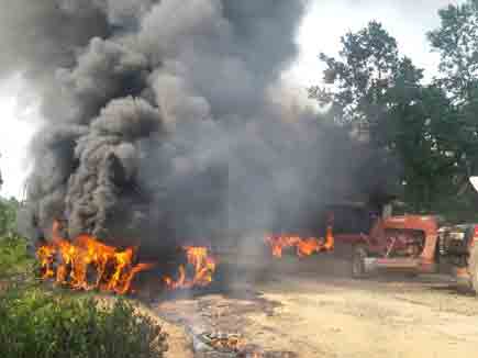 सुकमा। जिले के कोंटा सीमा से सटे आंध्रप्रदेश के चिन्तूर मंडल में नक्सलियों ने निर्माण कार्य में लगे 08 वाहनों को आग के हवाले कर दिया है। नक्सलियों ने इस इलाके में 01 साल बाद तांड़व मचाया है। सीमावर्ती क्षेत्र में नक्सलियों के द्वारा आगजनी की वारदात को अंजाम देने के बाद छत्त्ीसगढ़ के सुकमा जिले की पुलिस को अलर्ट पर रखा गया है।