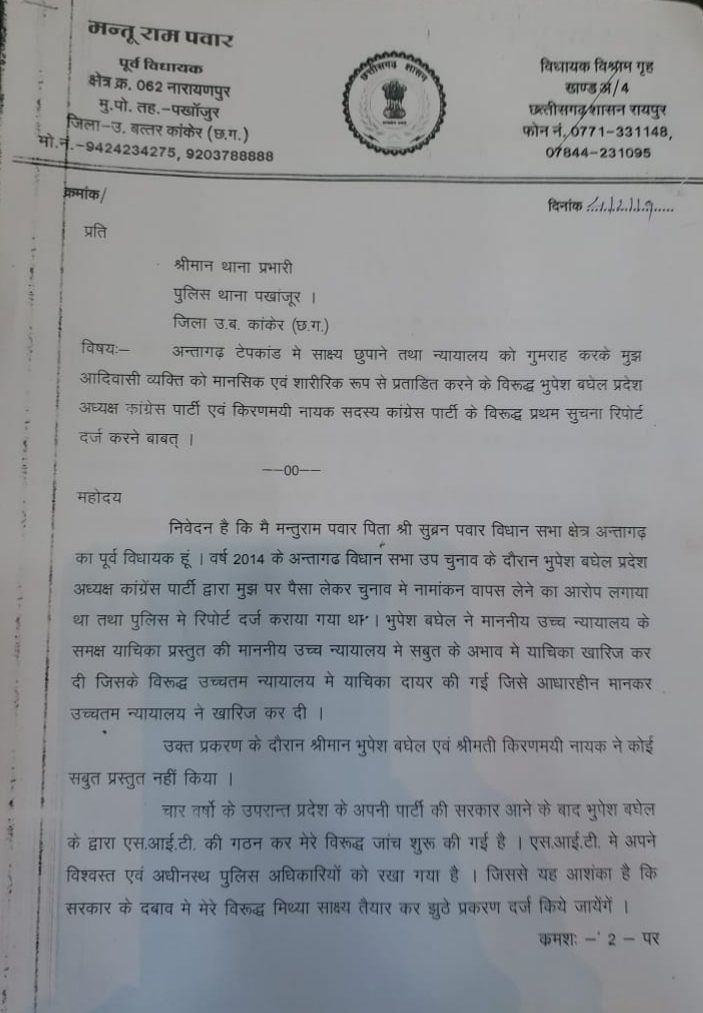 समीरा पैकरा ने रिपोर्ट दर्ज कराई है कि चुनाव के शपथ पत्र में अमित जोगी ने जन्मस्थान और जन्म तिथि को लेकर अलग जानकारी दी जबकि इस मामले में दायर रिट में अलग जानकारी दी, इसके अनुसार यह छल है. अमित जोगी ने नामांकन पत्र झूठे आधारों पर तथा झूठे प्रमाण पत्रों के आधार पर भरा, और चुनाव जीत गए.दूसरी ओर देर रात ही अमित जोगी का विडियो वायरल हुआ है जिसमें अमित जोगी इस FIR की जानकारी देते हुए यह कहते दिखाई पड़ रहे है कि,उनके विरुद्ध उस मामले में FIR दर्ज की गई जिसमें तीन दिन पहले उच्च न्यायालय ने समीरा पैकरा के द्वारा इसी मसले को लेकर दायर चुनाव याचिका ख़ारिज की गई है. - कुल मिला कर हाई प्रोफाइल मामला होने के कारण ये चर्चा में है दूसरी ओर अंतागढ़ के मामले में मन्तु राम पवार और धन देने के आरोपियों के खिलाफ मामला चर्चा में है, मंतूराम ने भी विधिक सलाहकारों , पूर्व मुख्यमंत्रो डॉक्टर रमन सिंह से सलाह मशविरा करने के बाद अंतागढ़ थाने में सी एम भूपेश बघेल और शिकायत करता किरण मयी नायक के विरुद्ध प्रकरण दर्ज कराने आवेदन दिया है.