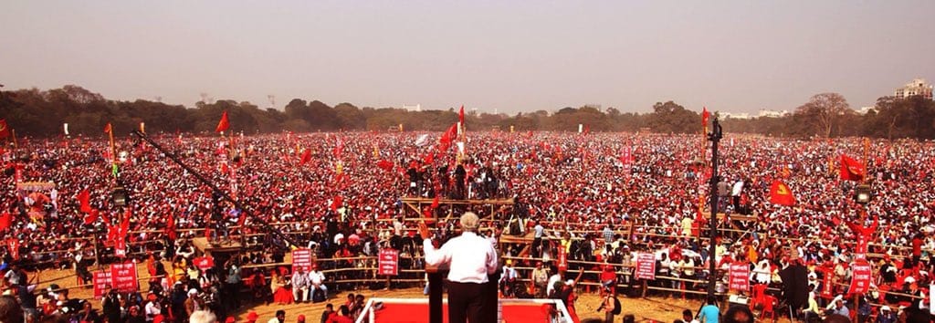 कोलकाता . परेड मैदान कोलकाता में 3 फरवरी को संयुक्त वाम मोर्चे की विशाल रैली जिसमें सी पी एम के नेतृत्व में वाम ने शानदार प्रदर्शन किया, मुख्यधारा की मीडिया और चेनलों में देश भर में इसके बारे में खबरे नहीं दिखाई दीं हैं, हर बार चुनाव के अवसर पर वाम और विभिन्न समाजवादी ताकतों के बीच विवाद खड़ा करने वाले तत्व , वाम एकता खंडित करने की कोशिश करते रहते हैं , किन्तु वाम फिर भी बढ़ता जा रहा है, उफनता जा रहा है, सड़कों में, मैदानों में और सबसे बढ़ कर युवा दिलों में.