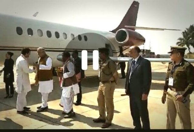 जगदलपुर.(एजेंसी फोटो ) कांग्रेस के राष्ट्रीय अध्यक्ष राहुल गांधी आज सुबह उड़ीसा के भवानीपटना जाने के लिए जगदलपुर पहुंचे. जगदलपुर एयरस्ट्रीप पर मुख्यमंत्री भूपेश बघेल उनके मंत्री कवासी लखमा समेत बस्तर के कई विधायकों ने गर्मजोशी से स्वागत किया.