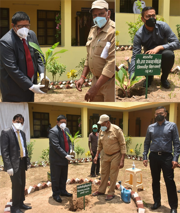 जिला एवं सत्र न्यायाधीश धमतरी सुधीर कुमार और कलेक्टर जय प्रकाश मौर्य ने नगरी स्थित नवीन व्यवहार न्यायालय परिसर में चंपा फूल के पौधे रोपकर किया वृक्षारोपण