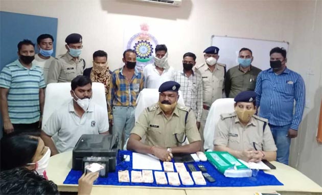 महासमुंद। पुलिस अधीक्षक प्रफुलल कुमार ठाकुर को विगत दिनों से सूचना मिल रही थी कि बसना क्षेत्रांतर्गत नकली नोट छापने का अवैध कारोबार किया जा रहा है व भीड़-भाड़ वाले स्थानो में नकली नोटो को खपाने का प्रयास कर रहे है। पुलिस अधीक्षक द्वारा थाना बसना की टीम को नकली नोट छापने/खपाने वालो का पता तलाश कर कड़ी कार्यवाही करने हेतु निर्देशित किया गया था। जिसपर थाना प्रभारी बसना द्वारा क्षेंत्र में मुखबीर व गुप्तचर लगाकर नकली नोट छापने/खपाने वालो गिरोह की तलाश कर रही थी कि दिनांक 28.06.2020 को मुखबीर से सूचना मिली ग्राम भवंरपुर रोड़ पर कुछ संदिग्घ अवस्था में लोग घुम रहे है। जिनके पास बहुत सारे पैसे है और वे लोग बड़ी नोट को छोटी नोट बदलने का प्रयास में ग्राहक तलाश कर रहे है। सूचना पर तत्काल थाना बसना स्टाफ भवंरपुर पहुचकर संदिग्ध लोगो पता तलाश में जुट गई। पुलिस टीम ग्राम भवंरपुर के आसपास के क्षेत्रों में संदिग्ध लोगा को ढूंढ रही थी। तब मुखबीर से पता चला उन लोगो को ग्राम धानापाली के पास देखा गया है।