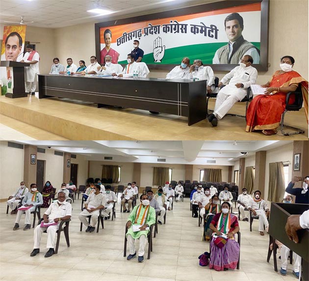 कांग्रेस सूत्रों ने बताया कि बैठक में मुख्यमंत्री भूपेश बघेल और प्रदेश कांग्रेस कमेटी के अध्यक्ष मोहन मरकाम विशेष रूप से उपस्थित हैं। बैठक में छत्तीसगढ़ के समस्त जिला मुख्यालयों में पार्टी संगठन के कार्यालय भवन निर्माण की प्रगति रिपोर्ट की समीक्षा और जिला कार्यकारिणी के संबंध में चर्चा की जा रही है। बैठक में पीसीसी पदाधिकारियों के अलावा जिला कांग्रेस कमेटी और शहर कांग्रेस कमेटियों के अध्यक्ष व पदाधिकारियों को विशेष रूप से उपस्थित रहने कहा गया था। इस बैठक में राज्य के अधिकांश जिलों के और शहरों के अध्यक्ष उपस्थित हैं।