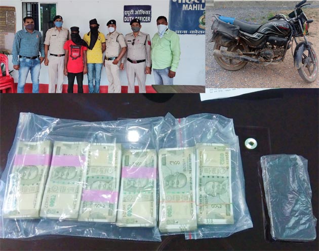 घटना के संबंध में आरोपियो से पूछताछ करने पर बताये कि 15 दिवस पूर्व जब मनोज कश्यप दिलीप चंद्रवंशी एवं नारायण चंद्रवंशी के साथ शराब पी रहा था तो उसने बोला कि मैं अपने सेठ मुन्ना अग्रवाल की बड़ी रकम हर दूसरे तीसरे दिन मोटर सायकल में लेकर बिलासपुर जाता हूं। तो दिलीप चंद्रवंशी ने मनोज कश्यप से कहा कि जब तू कोई बड़ी रकम लेकर बिलासपुर जायेगा तो बताना उस रकम को हम लोग रास्ते में ही लूट लेंगे और बराबर बराबर बांट लेंगे। घटना के एक दिन पूर्व दिनांक 08.07.20 को मनोज कश्यप ने दिलीप चंद्रवंशी को शाम को फोन करके बताया कि कल दिनांक 09.07.20 को को सुबह वह अपने सेठ का बड़ी रकम लेकर बिलासपुर जाउंगा तब रास्ते में तुम लोग लूट लेना, तब दिनांक 09.07.20 को सुबह मनोज कश्यप पारस यादव के साथ मोटर सायकल में पैसे लेकर कवर्धा से बिलासपुर जा रहा था कि जंगलपुर एवं खैरवार के बीच सुबह करीबन 08.45 बजे पप्पू चंद्रवंशी अपनी मोटर सायकल पेशन प्रो को उनकी गाड़ी के सामने लाकर खड़ा कर दिया और लात मारकर गिरा दिया। जिससे मनोज कश्यप एवं पारस यादव गिर गये। पप्पू चंद्रवंशी ने अपने जेब से मिर्ची पाउडर निकालकर दोनो के उपर फेंका इस घटना से डरकर पीछे की ओर भागा तब पीछे से स्कूटी में नारायण चंद्रवंशी ने बोरी में रखे रकम को अपनी स्कूटी में रखकर भाग गया।