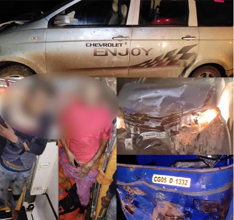 पुलिस सूत्रों से मिली जानकारी के अनुसार घटना बुधवार की रात 11 बजे ग्राम कुरमातराई पट्रोल पंप के पास की है. एक कार धमतरी से भखारा की ओर जा रही थी उस दौरान सामने से आ रही ऑटो से टक्कर हो गई. हादसे में ऑटो सवार नसीम खान (22), नरेंद्र (45), गोपी साहू (26) को गम्भीर चोट आई है. जिसके बाद तीनों घायलों को 108 संजीवनी वाहन से अस्पताल में भरती कराया गया. नरेंद्र के सिर में गंभीर चोट की वजह से अस्पताल में उसकी मौत हो गई है. वहीँ घटना की जानकारी मृतक के परिजनों को पुलिस ने दे दी है।
