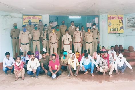 पिता स्व. चरण सिंह,ग्राम सांकरा धमतरी ,इरदीश अहमद पिता रफ ी अहमद ग्राम नगरी धमतरी ,देवेन्द्र ध्रव पिता ईश्वर ध्रुव ग्राम कुरुद धमतरी,दीनदयाल साहू पिता कृष्णा साहू ग्राम भिरई बालोद,देवेश यदु पिता राम नारायण यदु गुडरुपारा महासमुंद ,बिल्लू ऊर्फ मृत्युंजय भोई पिता अजय भोई,सोमवारी बाजार ग्राम नवापारा गोबरा नवापारा,शिवा निषाद पिता ब्यास निषाद ग्राम लटर्रापारा,गोबरानवापारा,हिमांचल चक्रधारी पिता तोरण चक्रधारी ग्राम सिवनी अर्जुनी धमतरी,जितेन्द्र चक्रधारी पिता तोरण चक्रधारी ग्राम सिवनी धमतरी ,डामन लाल साहू पिता रमाकांत साहू ग्राम कोसागोंदी बालोद ,सजन यादव पिता बालमुकुन्द यादव ग्राम खिसोरा, चौंकी करेलीबडी धमतरी,दशरथ ऊर्फ गैंदलाल साहू पिता कामता राम साहू ग्राम गाडाडीह, ठेकला धमतरी ,प्रवीण राजपूत ऊर्फ राज ठाकुर पिता जयकरण ठाकुर शीतला पार गाडाडीह(ठेकला), प्रवीण राजपूत ऊर्फ राज ठाकुर जयकरण ठाकुर उम्र 31 वर्ष शीतला पारा नवापारा नवापारा , राजकुमार निषाद उम्र 31 वर्ष पंजवानी चौंक नवापारा नवापारा , पूरण लाल देवांगन स्व.सुकालू देवांगन उम्र 32 वर्ष सा. गाडाडीह मगरलोड , विवेक मिश्रा पिता स्व. परमहंस मिश्रा उम्र 38 वर्ष सा0 नवागांव ब्राम्हण पारा नवापारा ,गणेश राम पिता सहदेव धोबी उम्र 35 वर्ष सिंधौरी कला कुरुद , प्रमेश मानिकपुरी पिता स्व. लखन लाल उम्र 44 वर्ष खिसोरा करेली बडी सभी को गिरफ्तार किया गया है। सभी जुआरियों के पास से 04 गड्डी 52 पत्ती तास व नगदी रकम 185200/ जब्त किया गया है। जुआरियों के खिलाफ जुआ एक्ट की धारा 13 के तहत कानूनी कार्रवाई कर 10-10 हजार रुपये के जमानतीय मुचलका पर रिहा कर दिया गया है।
