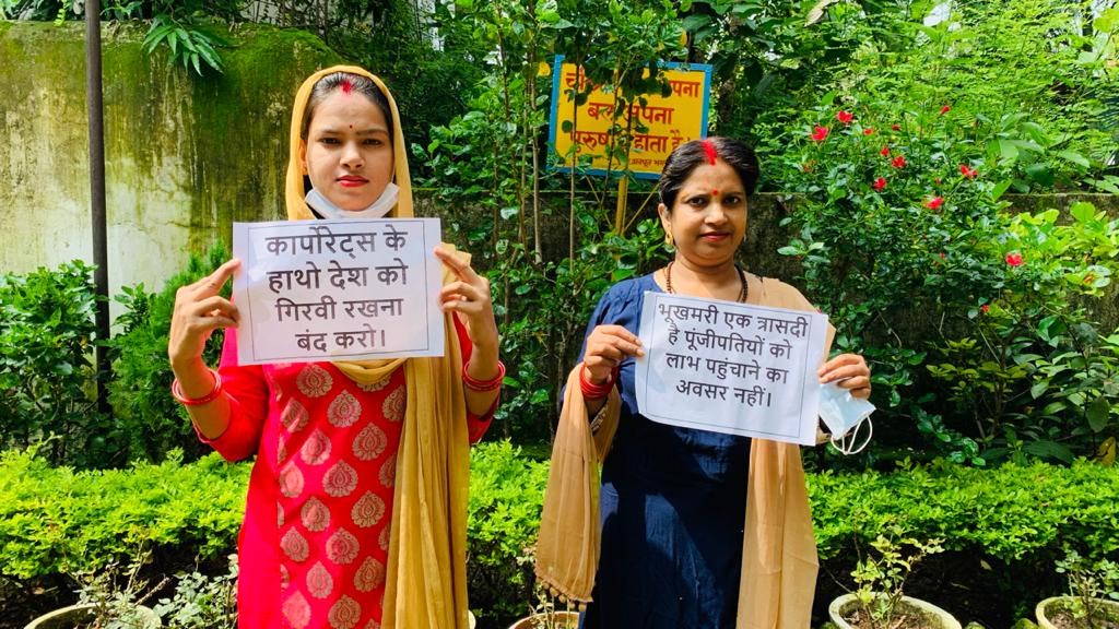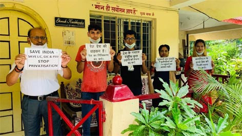 देश के कोने कोने में इन्कलाब जिंदाबाद,कार्पोरेट्स घरानों के हाथों देश को बेचना बंद करो।किसानों को उनके उत्पाद का उचित मूल्य दो,देश के नवरत्न राष्ट्रीयकृत सार्वजनिक क्षेत्र के उपक्रमों को कौड़ी के दाम बेचना बंद करो।निजीकरण की नीति बंद करो।शिक्षा व स्वास्थ्य चिकित्सा के ढांचे को मजबूत करो ,देश को गुलाम बनाने वाली नीतियां वापस लो, कोरोना की आड़ में देश को बेचना बंद करो। देश को धोखा देना बंद करो। भुखमरी, गरीबी एक त्रासदी है,पूंजीपतियों को लाभ पहुंचाने का अवसर नहीं,रेल देश की धड़कन है इसकी हिफाज़त करो,नई पेंशन योजना वापस लो पुरानी पेंशन योजना लागू करो, खाली हाथो को काम भूखों को रोटी दो, आत्मनिर्भरता के नाम पर राष्ट्रीयकृत संस्थाओं का निजीकरण बंद करो।झूठी घोषणाएं बंद करो ,देश की संप्रभुता व अर्थव्यवस्था की रक्षा करो, देश की राष्ट्रीय एकता अखंडता व सांप्रदायिक सद्भाव की रक्षा करो।कार्पोरेट्स परस्त नीतियों वापस लो और देश बचाओ के नारे व पोस्टर प्रदर्शन के साथ बहुत कड़ा विरोध प्रदर्शन किया गया।