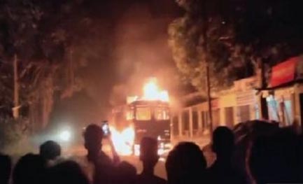 चित्रदुर्ग। कर्नाटक के चित्रदुर्ग जिले में आज सुबह विजयपुरा से बेंगलुरु जा रही प्राइवेट बस में भीषण आग लग गई। इस हादसे में जिंदा जलकर 5 लोगों की दर्दनाक मौत हो गई और 27 लोग घायल हुए हैं। बताया जा रहा है कि यह घटना चित्रदुर्ग जिले के नेशनल हाइवे पर हुई है। मीडिया रिपोर्ट के मुताबिक, इस प्राइवेट बस में 32 यात्री सवार थे और जिले के नेशनल हाइवे 4 पर केआर हल्ली के पास आग लग गई। इस घटना में 5 यात्रियों की मौत हो गयी। मरने वालों में दो बच्चों के साथ एक महिला भी शामिल है।