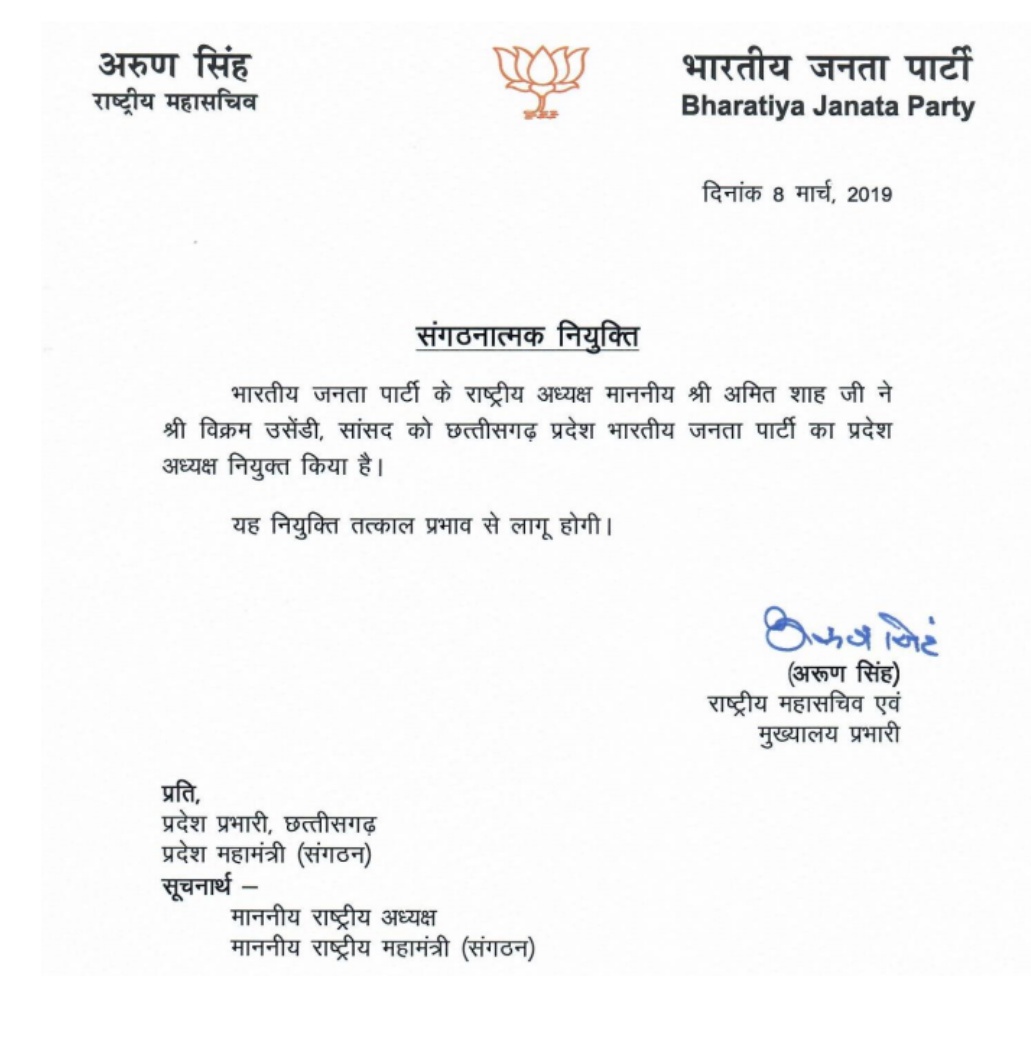 समझा जाता है, बस्तर में मतदाताओं को साधने के लिए बस्तर के सांसद को इस पद के लिए चुना है. इसके साथ ही अहम यह भी है कि लोकसभा चुनाव के ठीक पहिले पार्टी ने ट्राईबल कार्ड चलते हुए उसेंडी को मौका दिया है. समझा जाता है, बस्तर में मतदाताओं को साधने के लिए बस्तर के सांसद को इस पद के लिए चुना है. इसके साथ ही अहम यह भी है कि लोकसभा चुनाव के ठीक पहिले पार्टी ने ट्राईबल कार्ड चलते हुए उसेंडी को मौका दिया है.