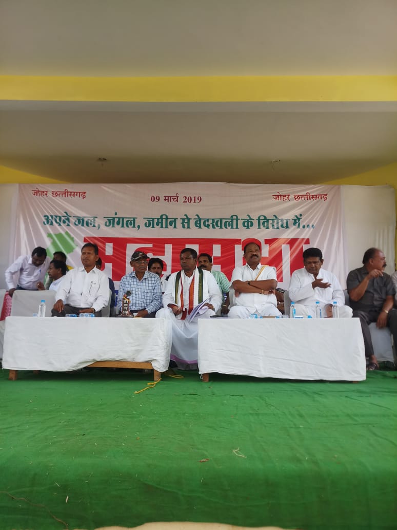 सर्व आदिवासी समाज, छत्तीसगढ़ किसान सभा, आदिवासी एकता महासभा और अन्य संगठनों के आह्वान पर सुप्रीम कोर्ट द्वारा आदिवासियों को वनभूमि से बेदखली करने के आदेश के खिलाफ हजारों आदिवासियों ने विरोध प्रदर्शन किया और इस आदेश को निरस्त करने के लिए अध्यादेश लाने की मांग की. उन्होंने प्रदेश में आदिवासी वनाधिकार मान्यता कानून, 5वीं अनुसूची के प्रावधानों और पेसा कानून को शब्द और भावना के अनुरूप पूर्णतः लागू करने की भी मांग की.