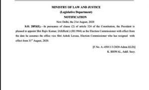 दिल्ली। देश के पूर्व वित्त सचिव राजीव कुमार को नया चुनाव आयुक्त नियुक्त किया गया है। वह अशोक लवासा का स्थान लेंगे। अशोक लवासा ने 18 अगस्त को अचानक चुनाव आयुक्त के पद से इस्तीफा दे दिया था। राजीव कुमार की नियुक्ति के बारे में सरकार ने नोटिफिकेशन जारी कर दिया है। राजीव कुमार वरिष्ठ नौकरशाह हैं और 1984 बैच के झारखंड कैडर के आईएएस अधिकारी हैं। वे इस साल मार्च में देश के वित्त सचिव के पद से रिटायर हुए हैं। राजीव कुमार मोदी सरकार के भरोसेमंद नौकरशाहों में गिने जाते हैं।