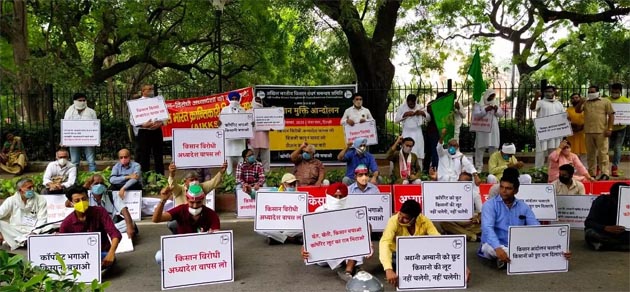 संसद के मानसून सत्र के पहले दिन कृषि से जुडे़ तीन विधेयक लोकसभा में पेश किये गये। विपक्ष ने किसान विरोधी बताकर इनका विरोध किया लेकिन कृषि मंत्री ने कहा कि ये विधेयक किसानों की स्थिति बदलेंगे और इससे न्यूनतम समर्थन मूल्य (MSP) के प्रावधानों पर कोई फर्क नहीं पड़ेगा। देशभर में किसान पहले से ही इन अध्यादेशों के विरोध में प्रदर्शन कर रहे हैं। कृषि एवं किसान कल्याण मंत्री नरेंद्र सिंह तोमर ने सोमवार 14 सितंबर को कृषि उपज व्यापार और वाणिज्य (संवर्द्धन और सुविधा) विधेयक-2020, कृषक (सशक्तिकरण एवं संरक्षण) कीमत आश्वासन और कृषि सेवा पर करार विधेयक-2020, आवश्यक वस्तु (संशोधन) विधेयक, 2020 लोकसभा में पेश किया। सरकार ने पांच जून 2020 को ही अध्यादेश जारी किए थे, यह तीनों विधेयक को उन संबंधित अध्यादेशों की जगह लेंगे। कृषि से जुडे़ इन तीन अध्यादेशों पर सरकार ने पेश किया विधेयक कृषि उत्पादन व्यापार और वाणिज्य (संवर्धन और सुविधा) अध्यादेश इस अध्यादेश से किसान अपनी उपज देश में कहीं भी, किसी भी व्यक्ति यो संस्था को बेच सकते हैं। इसके जरिये सरकार एक देश, एक बाजार की बात कर रही है। किसान अपना उत्पाद खेत में या व्यापारिक प्लेटफॉर्म पर देश में कहीं भी बेच सकेंगे। इस बारे में केंद्रीय कृष मंत्री नरेंद्र तोमर ने लोकसभा में बताया कि इससे किसान अपनी उपज की कीमत तय कर सकेंगे। वह जहां चाहेंगे अपनी उपज को बेच सकेंगे। इस विधेयक में पारिस्थितिकी तंत्र बनाने का प्रावधान किया गया है। जिसकी मदद से किसान के अधिकारों में इजाफा होगा और बाजार में प्रतियोगिता बढ़ेगी। किसान को उसकी फसल की गुणवत्ता के अनुसार मूल्य निर्धारण की स्वतंत्रता मिलेगी। आवश्यक वस्तु अधिनियम 1955 में संशोधन पहले व्यापारी फसलों को किसानों के औने-पौने दामों में खरीदकर उसका भंडारण कर लेते थे और कालाबाज़ारी करते थे, उसको रोकने के लिए Essential Commodity Act 1955 बनाया गया था जिसके तहत व्यापारियों द्वारा कृषि उत्पादों के एक लिमिट से अधिक भंडारण पर रोक लगा दी गयी थी। अब नये विधेयक आवश्यक वस्तु (संशोधन) विधेयक, 2020 आवश्यक वस्तुओं की सूची से अनाज, दाल, तिलहन, खाद्य तेल, प्याज और आलू जैसी वस्तुओं को हटाने के लिए लाया गया है। इन वस्तुओं पर राष्ट्रीय आपदा या अकाल जैसी विशेष परिस्थितियों के अलावा स्टॉक की सीमा नहीं लगेगी। इस पर सरकार का मानना है कि अब देश में कृषि उत्पादों को लक्ष्य से कहीं ज्यादा उत्पादित किया जा रहा है। किसानों को कोल्ड स्टोरेज, गोदामों, खाद्य प्रसंस्करण और निवेश की कमी के कारण बेहतर मूल्य नहीं मिल पाता है। मूल्य आश्वासन पर किसान (बंदोबस्ती और सुरक्षा) समझौता और कृषि सेवा अध्यादेश यह कदम फसल की बुवाई से पहले किसान को अपनी फसल को तय मानकों और तय कीमत के अनुसार बेचने का अ