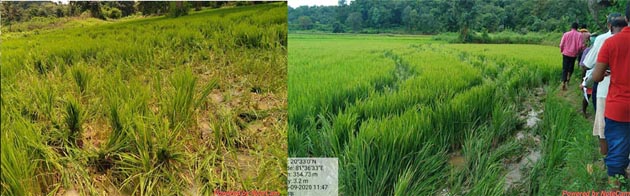 नगरी। हाथियों का दल एक बार पुन: धमतरी जिले के अंतिम छोर पर बसे गंगरेल डूबान क्षेत्र के ग्राम कलारबाहरा से होते हुए आज ग्राम बरबांधा, पहरियाकोन्हा से नरहरपुर विकासखंड के ग्राम मुरूमतरा पहुंच कर लगभग 4 एकड़ फसल को रौंदकर बर्बाद कर दिया है। मुरूमतरा पहुंचने की खबर से ग्राम बागडोंगरी, मारवाड़ी, बदबनी से ग्रामीणों में दहशत है। एक बच्चा हाथी के साथ 22 हाथियों का दल कल बुधवार को ग्राम कलारबाहरा के आसपास के ग्राम हरफर, अरौद, पटौद, खंबेश्री, पटेलगुड़ा, उरपुटी, मोंगरी, सिलतरा के जंगलों में विचरण कर रहे थे। कल ही ग्राम उरपुटी में करीब 4 एकड़ धान के फसल को रौंदकर तहस नहस कर दिया था।