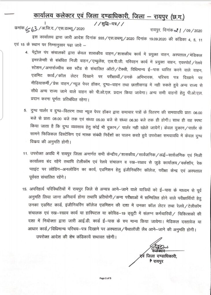 रायपुर जिला अंतर्गत सभी केंद्रीय, शासकीय, सार्वजनिक अर्ध सार्वजनिक एवं निजी कार्यालय बंद रहेंगे.