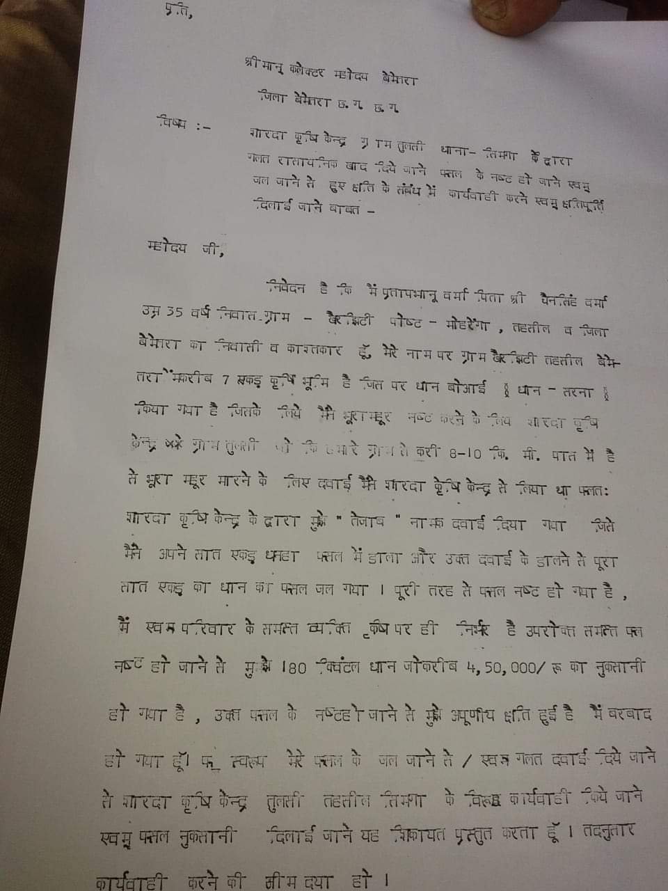 रायपुर, आज यहां जारी एक बयान में छग किसान सभा के राज्य अध्यक्ष संजय पराते और महासचिव ऋषि गुप्ता ने कहा है कि प्रदेश के कृषि बाजार को सुनियोजित तरीके से नकली कीटनाशकों से पाट दिया गया है और किसान इसका शिकार हो रहे हैं। उन्होंने कहा कि दुर्ग में दुर्गेश निषाद द्वारा इन नकली कीटनाशकों के कारण फसल जल जाने के कारण आत्महत्या कर लेने के बाद अब बेमेतरा जिले में एक और प्रकरण सामने आया है, जिसमें विकासखंड नवागढ़ के ग्राम खैरझिठी के प्रताप भानु वर्मा नामक किसान द्वारा ‘तेजाब’ नामक कीटनाशक का प्रयोग करने के बाद उसके 7 एकड़ खेत में खड़ी 5 लाख रुपये मूल्य की फसल जल कर नष्ट हो गई है। उन्होंने बताया कि इस कीटनाशक के डिब्बे में जिस फर्म का नाम व नंबर लिखा हुआ है, वह गलत पाया गया है। यह मामला सामने आने के बाद शारदा कृषि केंद्र, ग्राम तुलसी, दामाखेड़ा का विक्रेता दुकानदार परदेशी राम देवांगन इस मामले को दबाने की कोशिश में कीटनाशक के खाली डिब्बों को पीड़ित किसान के घर से उठाकर ले गया है। इस पूरे मामले की रिपोर्ट कलेक्टर से करने के बाद भी अभी तक कोई कार्यवाही नहीं की गई है।