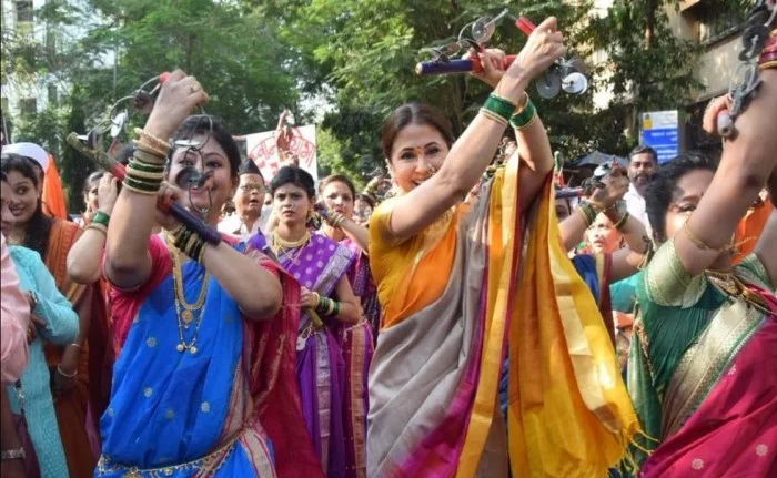 मुंबई। पारंपरिक पैठणी साड़ी से सजी धजी उर्मिला मातोंडकर शनिवार को गुढीपाडवा के मौके पर वोट मांगती नजर आईं. इस दौरान उन्होंने वहां मौजूद महिलाओं के साथ नृत्य भी किया. बता दें कि महाराष्ट्र में हिंदू नव वर्ष के साथ गुढीपाडवा भी धूमधाम से मनाया जाता है. इस दौरान ढोल नगाड़ों के साथ जुलूस निकालने की परंपरा है, जिसमें बड़ी संख्या में महिलाएं शामिल होती हैं.