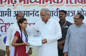 रायपुर। मुख्यमंत्री भूपेश बघेल ने आज स्वामी आत्मानंद मेधावी छात्र प्रोत्साहन योजना अंतर्गत छत्तीसगढ़ माध्यमिक शिक्षा मंडल की वर्ष 2023 की वार्षिक परीक्षा में कक्षा 10वीं और 12वीं प्रावीण्य सूची में स्थान प्राप्त करने वाले छात्र-छात्राओं को सम्मानित किया। समारोह में सभी मेधावी छात्र-छात्राओं को डेढ़-डेढ़ लाख रूपये की प्रोत्साहन राशि प्रदान की गई।