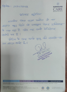 रामकृष्ण केयर हस्पिटल ने जारी किया मेडिकल बुलेटिन