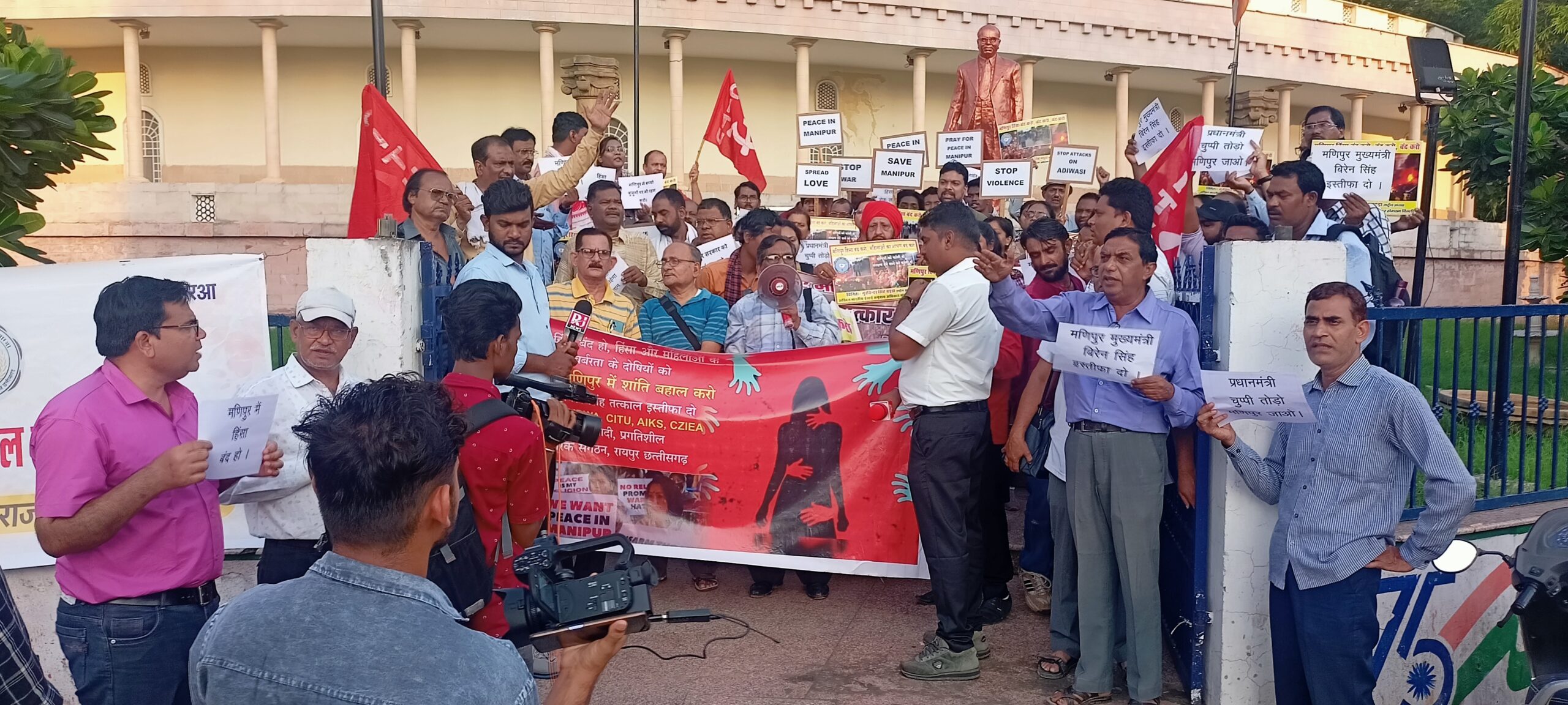 रायपुर। मणिपुर में हो रही क्रूर हिंसा, महिलाओं के प्रति अत्याचार को रोकने, मणिपुर में शांति बहाली की मांग तथा मणिपुर की बीरेन सिंह की सरकार को बर्खास्त करने की मांग को लेकर 25 जुलाई की शाम रायपुर शहर के प्रमुख सामाजिक संगठनों, ट्रेड यूनियन, किसान संगठन, शिक्षक संगठन, छात्रों संगठन, युवाओं, महिला संगठनों और आदिवासी संगठनों के कार्यकर्ताओं ने अंबेडकर प्रतिमा के समक्ष मानव श्रृंखला बनाकर प्रदर्शन किया।