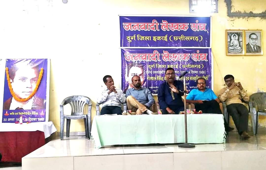 दुर्ग – इस सदी के महान जनवादी कवि और विश्व विख्यात फिल्मी गीतकार शैलेन्द्र के जन्म के सौ वर्ष पूर्ण होने के अवसर पर जनवादी लेखक संघ दुर्ग और महामाया बुद्ध विहार कल्याण समिति कर्मचारी नगर दुर्ग के संयुक्त तत्वावधान में गीतकार और कवि शैलेन्द्र के कृतित्व और व्यक्तित्व पर आधारित एक वैचारिक गोष्ठी का आयोजन किया गया।