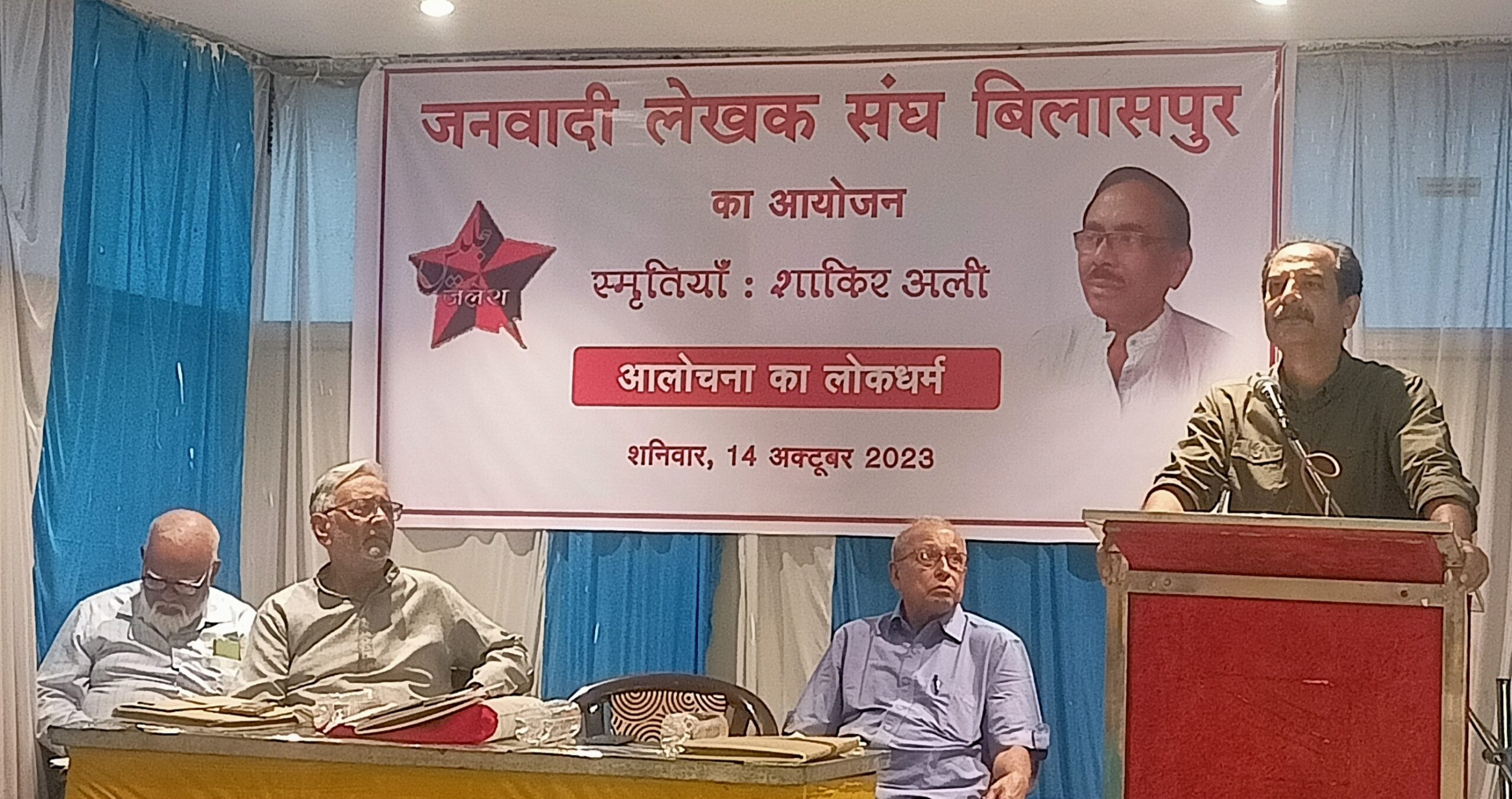 बिलासपुर , जनवादी लेखक संघ बिलासपुर द्वारा लेखक, कवि, समीक्षक स्व. शाकिर अली पर केंद्रित कार्यक्रम 14 अक्टूबर को बिलासपुर में सम्पन्न हुआ। बिलासपुर के मित्रों परिजनों , बैंक यूनियन के साथियों के अलावा देश प्रदेश से आये अनेक साहित्यकारों ने उन्हें इस अवसर पर याद किया।