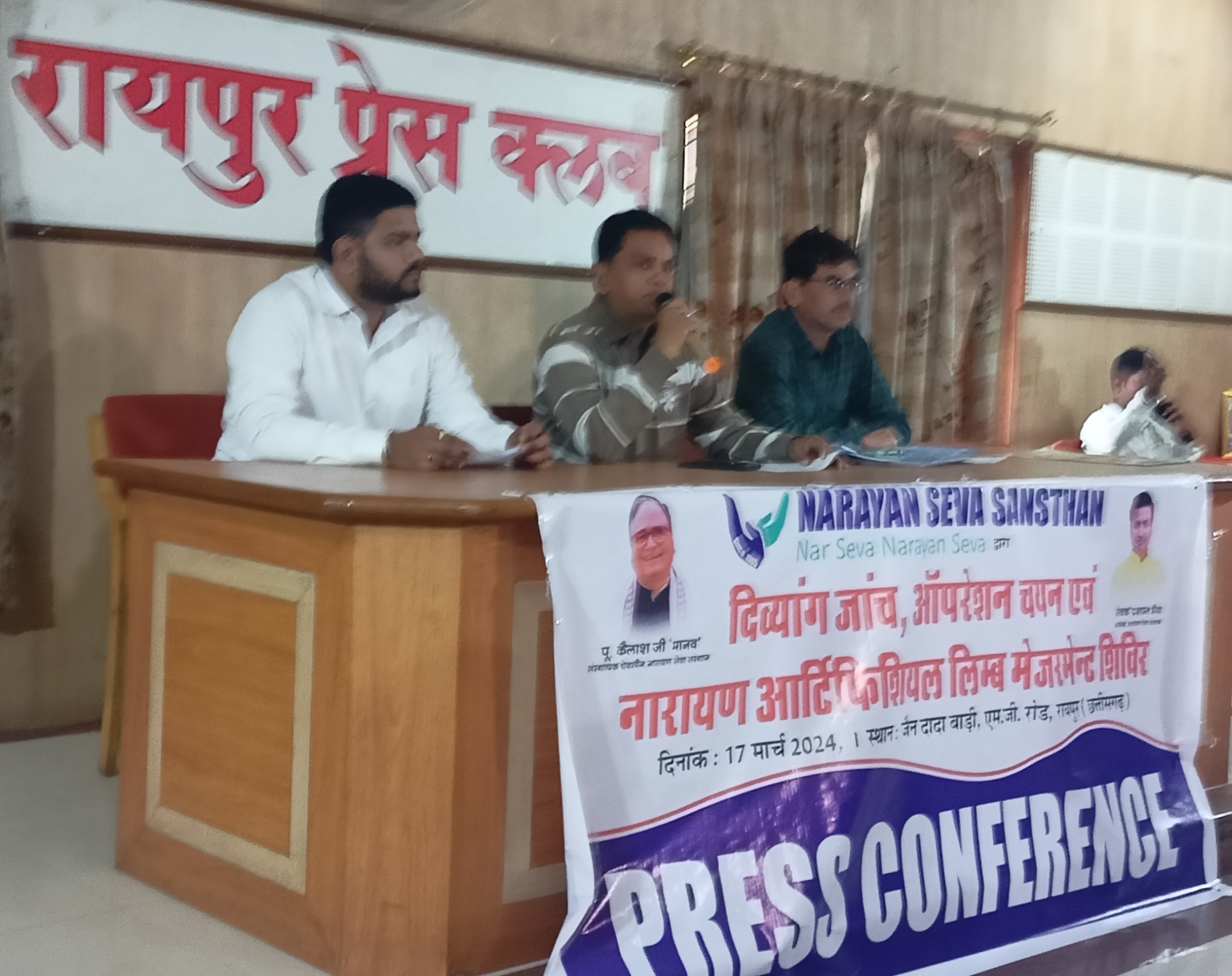 श्री गौड़ ने बताया कि इस शिविर के लिए संस्थान पदाधिकारियों ने रायपुर के सम्मानित व्यक्तियों और छत्तीसगढ़ शासन के मंत्रियों को भी आमन्त्रित किया है। करीब 1000 लाभार्थियों का लक्ष्य रायपुर कैम्प के लिये रखा गया है। शिविर में स्थानीय संगठन श्री मानव सेवा संस्थान, अखंड ब्राह्मण समाज सेवा समिति, छत्तीसगढ़ प्रांतीय महिला अग्रवाल संगठन, महिला पतंजलि योग समिति, रायपुर केरला समाजम, श्रीश्याम सेवादारी महिला संघ, छत्तीसगढ़ सर्व नाई समाज, छत्तीसगढ़ प्रदेश साहू संघ,राजश्री इंटर प्राइजेज,श्रीरामजी की सेना, अग्रवाल सभा रायपुर गुढीयारी मोहल्ला समिति, राणा फाउंडेशन,मणिकार्निका सहित 30 से ज्यादा समाज और संघ नारायण सेवा संस्थान के इस शिविर में स्वयंसेवक सहयोगी के रूप में जुड़ चुके हैं। कांफ्रेंस में संस्थान के पदाधिकारीयों और रायपुर केंद्र प्रभारी भरत और कौशल पालीवाल ने शिविर पोस्टर का विमोचन किया।