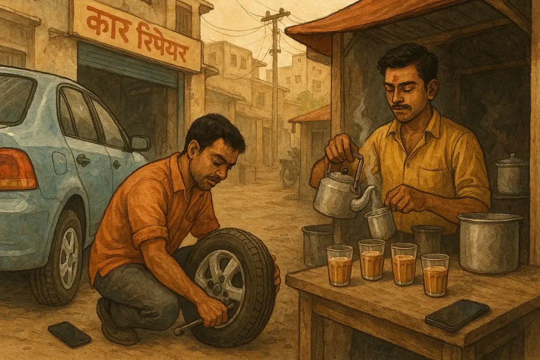 चाय वाली बिरादरी एक अलग तरह के कॉन्फिडेंस में है। उसे लगता है कि हमारे नुमाइंदे चाय बेचते-बेचते देश बेचने लगे लेकिन पड़ोसी पंक्चर वाला वहीं का वहीं रहा।