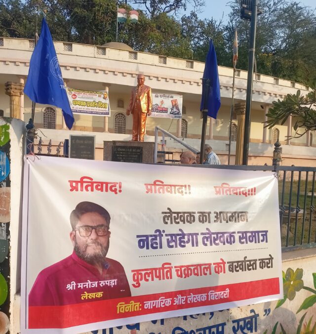 रायपुर। वरिष्ठ कथाकार-उपन्यासकार मनोज रुपड़ा से बदसलूकी करने वाले कुलपति आलोक चक्रवाल को हटाने की मांग को लेकर छत्तीसगढ़ के रायपुर में लेखक-संस्कृतिकर्मियों और पत्रकारों ने आज सड़क पर उतरकर प्रतिवाद दर्ज किया और राष्ट्रपति के नाम पर राज्यपाल को ज्ञापन सौंपा।