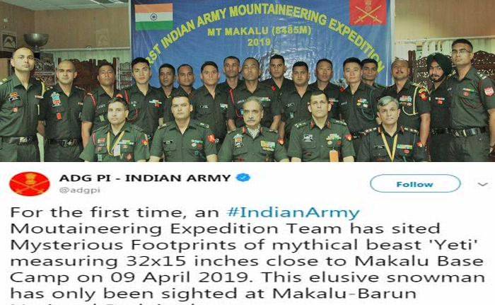 नई दिल्ली। भारतीय सेना ने सुदूर हिमालय के इलाके में रहस्यमयी हिममानव येती के निशान ढूंढने का दावा किया है. भारतीय सेना ने अपने ट्वीटर हैंडल से इसकी तस्वीरें भी शेयर की हैं.