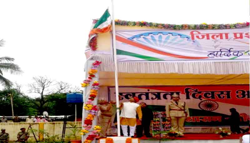 रायपुर . स्वतंत्रता दिवस की सुबह खबरों में सबसे ज्यादा चर्चा रही राष्ट्रध्वज के उल्टे फहराए जाने की , दरअसल हैरान कर देने वाली तस्वीर बीजापुर जिले से आई है। यहां प्रियदर्शनी इंदिरा स्टेडियम में स्वतंत्रता दिवस के मुख्य कार्यक्रम में शामिल हुए वन मंत्री महेश गागड़ा ने उल्टा तिरंगा फहरा दिया। हालांकि जाहिर सी बात है इसमें मंत्री गागड़ा को यह नहीं मालूम था कि बांधा गया तिरंगा उल्टा हो सकता है.