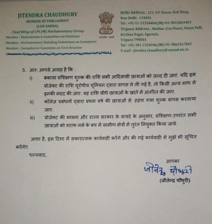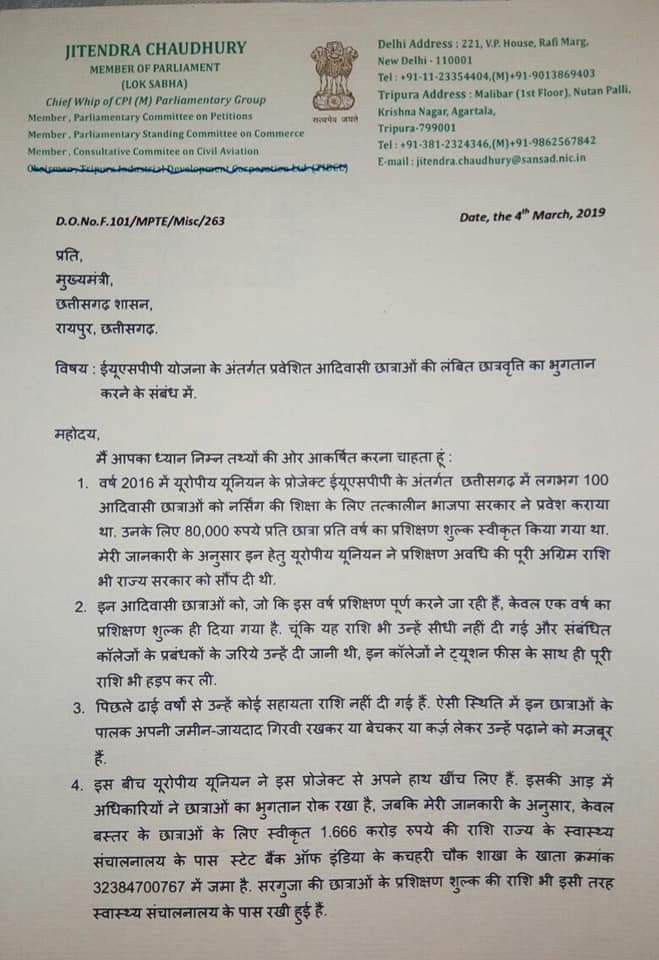 उल्लेखनीय है कि यूरोपीयन कमीशन की ईसीएसपीपी कार्यक्रम के तहत इन आदिवासी छात्रों को वर्ष 2016 में तत्कालीन भाजपा सरकार द्वारा नर्सिंग कॉलेजों में प्रवेश दिलाया गया था. लेकिन इस फंड में घोटाले के कारण कमीशन ने इस प्रोजेक्ट को बंद कर दिया है. इसकी आड़ में भाजपा सरकार ने भी छात्रों को छात्रवृत्ति देना बंद कर दिया था, जबकि यह राशि कमीशन द्वारा पहले ही राज्य सरकार को दी जा चुकी थी.