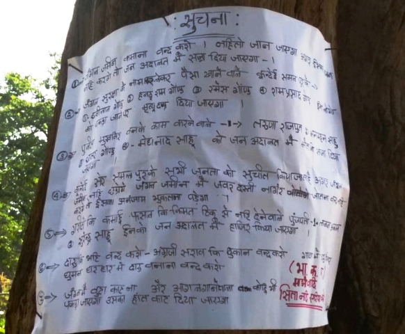 जानकारी के मुताबिक धमतरी जिले के खल्लारी इलाके के जंगल में नक्सलियों ने पर्चे और पोस्टर चस्पा किए हैं, जिसमें वनकर्मियों को जनअदालत में सजा सुनाने की चेतावनी दी गई है. इसके अलावा नक्सलियों ने इन पर्चों में कई अन्य मुद्दों का जिक्र भी किया है.