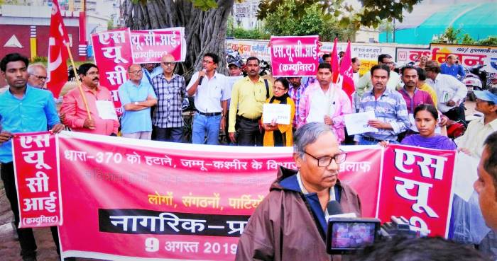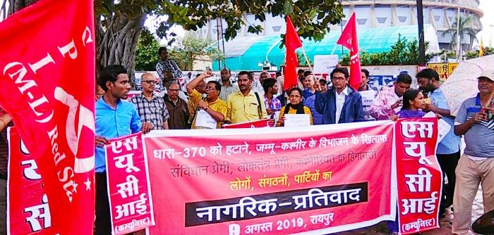 रायपुर. 10अगस्त19 (इंडिया न्यूज रूम) छत्तीसगढ़ की पांच वामपंथी पार्टियों ने संविधान के अनुच्छेद 370 और 35-ए को खत्म करने तथा जम्मू-कश्मीर राज्य को विभाजित करने के केंद्र सरकार के कदम को देश के संघीय ढांचे, लोकतंत्र, धर्मनिरपेक्षता और कश्मीरियत पर खुला हमला बताते हुए पूरे राज्य में आज नागरिक-प्रतिवाद प्रदर्शन आयोजित किया.