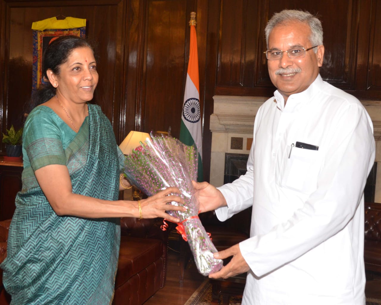 रायपुर, 23 अक्टूबर 2019 छत्तीसगढ़ के मुख्यमंत्री भूपेश बघेल ने नई दिल्ली प्रवास के दौरान आज केन्द्रीय वित्त मंत्री निर्मला सीतारमण से सौजन्य मुलाकात की. इस दौरान श्री बघेल ने छत्तीसगढ़ राज्य से संबन्धित महत्वपूर्ण वित्तीय मुद्दों की तरफ उनका ध्यान आकर्षित कराया. श्री बघेल ने केंद्रीय करों में राज्य के हिस्से में की गयी कमी की भरपाई का आग्रह किया. मुख्यमंत्री ने बताया कि केंद्रीय अन्तरिम बजट के अनुसार छत्तीसगढ़ राज्य को 26,014 करोड़ प्राप्त होना था, राज्य को अंतरित होने वाली राशि में इस वर्ष कुल 1690 करोड़ की कमी की जा चुकी है. उन्होंने केंद्र सरकार के आगामी अनुपूरक बजट में कमी की भरपाई करने की व्यवस्था करने का आग्रह किया. वहीं श्री बघेल ने जीएसटी क्षतिपूर्ति अनुदान को वित्तीय वर्ष 2021-22 के पश्चात भी आगामी पाँच वर्ष तक जारी रखने के लिए जीएसटी परिषद तथा भारत सरकार के स्तर पर उपयुक्त कदम उठाने की बात कही.