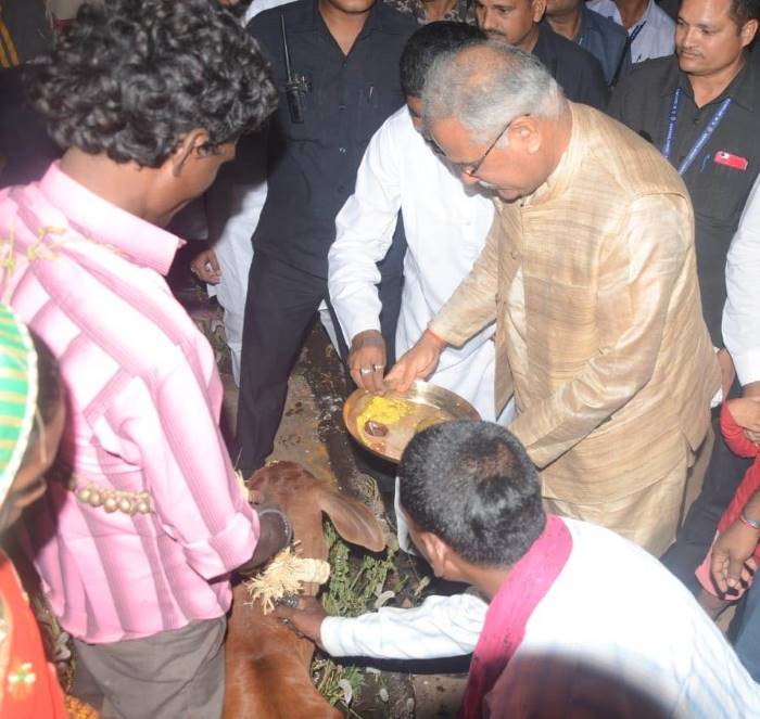 मुख्यमंत्री ने कहा कि कृषि और पशुधन पर जोर इन दो बातों को हम लेकर चल रहे हैं. खेती-किसानी पर जोर देकर, इनमें नवाचार अपनाकर हम समृद्धि की राह पकड़ सकते हैं. हमारा सौभाग्य है कि छत्तीसगढ़ की भूमि परंपरागत ज्ञान के मामले में काफी समृद्ध है. हमें अपनी इस अमूल्य धरोहर को सहेजकर रखना है. गोवर्धन पूजा के साथ ही गौठान दिवस के आयोजन का उद्देश्य भी यही है. इस मौके पर मुस्लिम समाज के पदाधिकारियों ने भी मुख्यमंत्री का सम्मान किया. मुख्यमंत्री के बेलौदी पहुंचने पर गांव में उत्सव का माहौल अपने चरम पर पहुंच गया. गोवर्धन पूजा और इसके बाद राऊत नाचा ने उत्सव के रंग में चार चांद लगा दिए. अपने बीच मुख्यमंत्री को पाकर ग्रामीण काफी उत्साहित थे और देर शाम तक बेलौदी जश्न में डूबा रहा. उल्लेखनीय है कि आज जिले भर में विविध गौठानो में आज गौठान दिवस का आयोजन किया गया जिसमें प्रशासनिक अधिकारियों के साथ ग्रामीणों ने उत्साह से हिस्सा लिया.