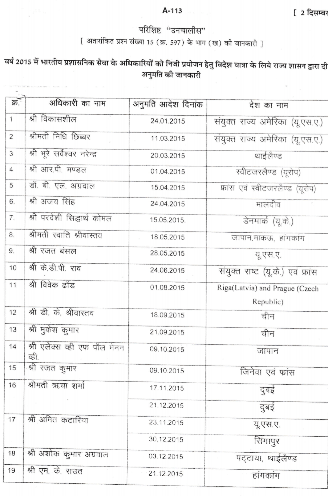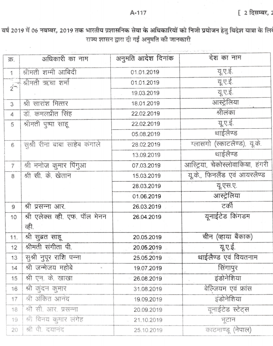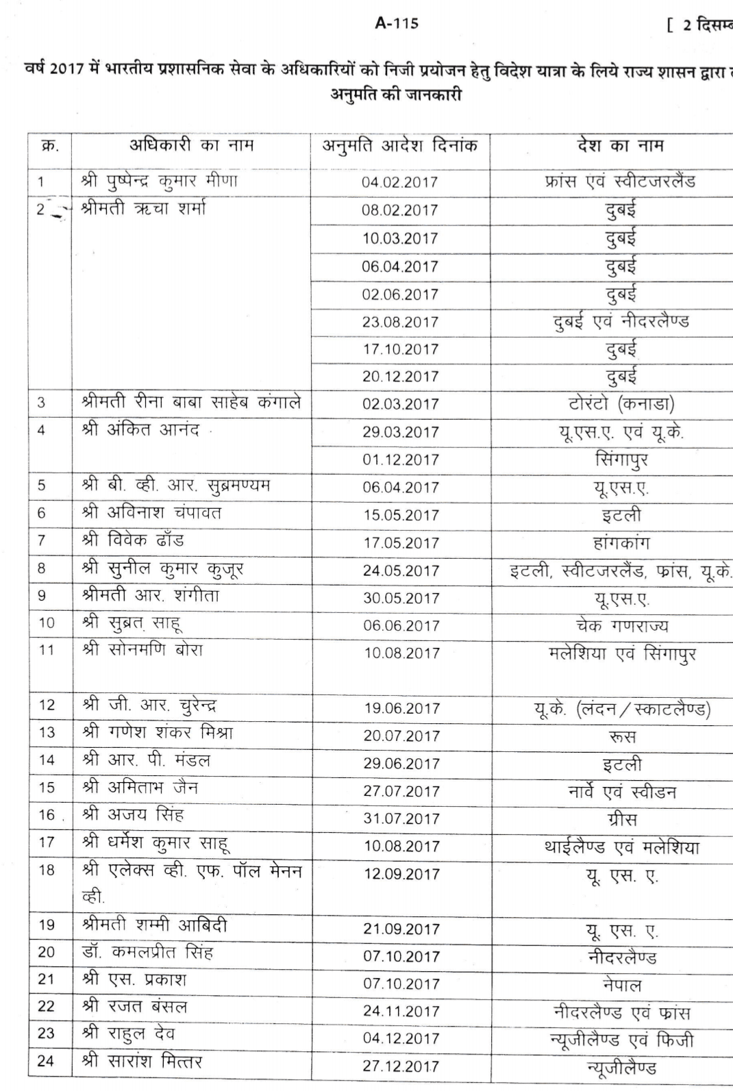 आईएएस और उनके विदेश यात्राओं का विवरण इस प्रकार है –