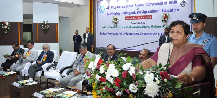 रायपुर, 12 दिसंबर 2019. राज्यपाल अनुसुईया उइके आज स्नातक कृषि शिक्षा में पुनर्विचार विषय पर आयोजित भारतीय कृषि विश्वविद्यालय संघ के 44वें वार्षिक कुलपति सम्मेलन में शामिल हुई. उन्होंने अपने संबोधन में कहा कि दिनों दिन बढ़ रही आबादी की तुलना में रोजगार के अवसर उतने नहीं बढ़ रहे हैं, ऐसे में कृषि ही एक ऐसा क्षेत्र है जिसमें बड़ी संख्या में रोजगार का निर्माण किया जा सकता है. इसके लिए आवश्यक है कि कृषि को व्यवसाय के रूप में अपनाने युवाओं को प्रेरित किया जाए, जिससे कृषि को उद्योग के रूप में परिवर्तित किया जावे.