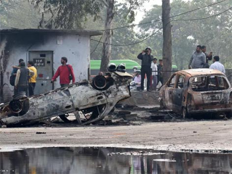 जलाए गए मकान और गाड़ी से एक-एक लाश