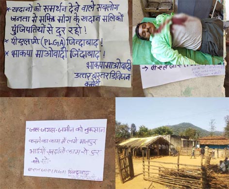 नक्सलियों द्वारा जारी पर्चो में लिखा है कि लौह अयस्क कंपनी के मालिकों के समर्थक पूंजीपतियों के साथ होने के कारण पीएलजीए एवं जनता ने उन्हें यह सजा दिया है। साथ ही जल जंगल जमीन को बचाने एवं खदान के काम से मजदूरों को दूर रहने की बात कही गई है।