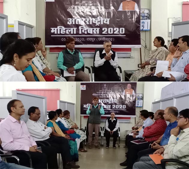 कार्यक्रम के प्रारम्भ में पत्र सूचना कार्यालय, रायपुर के अपर महानिदेशक, सुदर्शन पनतोड़े ने अतिथियों का स्वागत करते हुए आयोजन उद्देश्य के बारे में बताया कि सूचना एवं प्रसारण मंत्रालय, भारत सरकार द्वारा अंतरराष्ट्रीय महिला दिवस 2020 के उपलक्ष्य में देशभर में 01 मार्च से 10 मार्च, 2020 तक शिक्षा, स्वास्थ्य और पोषण, महिलाओं का सशक्तीकरण, खेल में कौशल और उद्यमिता और भागीदारी, दिव्यांग, उत्तर-पूर्व, द्वीप, आदिवासी, ग्रामीण महिलाएं और कृषि, महिलाओं द्वारा किए गए आविष्कार, जैविक खाद्य, खाद्य प्रसंस्करण, गर्भवती महिलाओं को डीबीटी जारी, आयुष्मान भारत, महिलाओं की सुरक्षा के लिए नियंत्रण केंद्र आदि विषयों पर देशभर में विभिन्न कार्यक्रमों का आयोजन किया जा रहा है।
