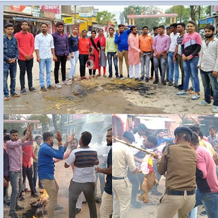धमतरी। अखिल भारतीय विद्यार्थी परिषद धमतरी द्वारा स्कूली शिक्षा मंत्री का पुतला दहन किया गया। एबीवीपी प्रदेश मंत्री शुभम जायसवाल ने कहा छत्तीसगढ़ प्रदेश सरकार के छात्र विरोधी आदेश अनुसार जिले की एक विद्यालय को बंद कर उसके स्थान पर नए उसी इंफ्रास्ट्रक्चर में अंग्रेजी माध्यम स्कूल खोलने का निर्णय लिया गया है,जिसके विरोध में विद्यार्थी परिषद ने शनिवार को स्कूल शिक्षा मंत्री का पुतला फूंका। एबीवीपी ने चेतावनी दी है कि जल्द से जल्द इस निर्णय को वापस लें अन्यथा प्रदेश भर के छात्र सड़कों पे उतरकर सरकार से लड़ाई लड़ेंगे। धमतरी जिले के 110 वर्ष पुराने नत्थूजी जगताप नगर निगम स्कूल का चयन किया गया है। नगर निगम स्कूल जिले का सबसे पुराने स्कूल में से एक है। जिला संयोजक वेदप्रकाश साहू ने कहा इस विद्यालय में विद्यार्थी विद्यालय के परंपरागत ज्ञान से प्रभावित होकर यहां पढ़ने पहुंचते हैं, जिस वजह से आज यह विद्यालय इस मुकाम में पहुंचा है। ऐसे विद्यालय को बंद करना सैकड़ों छात्रों के साथ अन्याय होने की बात कही।