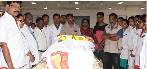 जगदलपुर। भाई की अंतिम इच्छा के अनुसार शनिवार को एक बहन ने अपने भाई के पार्थिव शरीर का देहदान स्व. बलिराम कश्यप मेडिकल कालेज डिमरापाल को किया है। उल्लेखनिय है कि अटल बिहारी वाजपेई वार्ड निवासी विनोद सिंह (52) के बीमार होने के कारण मेडिकल कालेज डिमरापाल में ईलाज के दौरान मृत्यु हो गई। विनोद सिंह के द्वारा अपनी मृत्यु के पूर्व अपने शरीर को चिकित्सकीय शिक्षा के लिए दान करने की ईच्छा व्यक्त की थी। उनकी ईच्छानुसार विनोद सिंह की बहन मंजू सांतरा द्वारा भाई के पार्थिव शरीर को मेडिकल कॉलेज में दान करने में उनकी बहन मंजू सांतरा, बहनोई सुपर्ण सांतरा एवं अनुराग मिश्रा सहयोगी रहे। इनके प्रेरणास्रोत कार्य के लिए अधिष्ठाता डॉ. यूएस पैकरा, विभागध्यक्ष एनाटॉमी सहप्रध्यापक डॉ. देवदास, कर्मचारी एवं मेडिकल कालेज डिमरापाल के छात्र-छात्राओं ने आभार प्रकट किया।