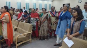 जैसे गीतों की लयबद्ध प्रस्तुति दी गयी . तमिल गीत की प्रस्तुति भी वहां से आई महिला साथी द्वारा किया गया .